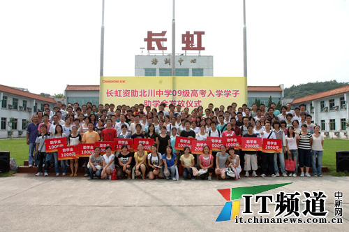 長虹公司2008年開始實施對北川中學(xué)高考錄取生的獎學(xué)金計劃,目前共計發(fā)放獎勵金額14萬元,惠及119人,極大激勵了北川中學(xué)高考學(xué)子及在校師生的學(xué)習(xí)熱情。