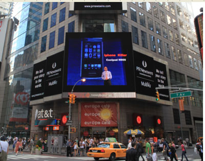 由于成為美國近一周來媒體關(guān)注的焦點(diǎn),作為紐約地標(biāo)建筑的時(shí)代廣場新聞電子大屏對《Yulong Launches Coolpad N900 in China to Combat iPhone》的新聞進(jìn)行了長時(shí)間的播報(bào),中國手機(jī)新力量可能對iphone產(chǎn)生的沖擊引起了美國社會的廣泛關(guān)注,這也是國產(chǎn)手機(jī)首次亮相紐約時(shí)代廣場。