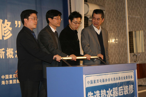 中新網(wǎng)3月8日電 日前,由中國(guó)家用電器協(xié)會(huì)電熱水器專業(yè)委員會(huì)主辦,專業(yè)委員會(huì)主任單位海爾熱水器公司承辦的“家裝新概念—先選熱水器后裝修”研討會(huì)在京舉辦,中國(guó)建筑裝飾協(xié)會(huì)、中國(guó)房地產(chǎn)協(xié)會(huì)以及阿里斯頓、美的、帥康、萬(wàn)和、萬(wàn)家樂、西門子、康泉等熱水器廠商參與了協(xié)辦。三大協(xié)會(huì)和八大熱水器生產(chǎn)企業(yè)針對(duì)大部分消費(fèi)者存在先裝修后選熱水器的習(xí)慣而帶來(lái)的用戶滿意度不高,共同倡導(dǎo)“先選熱水器后裝修”的消費(fèi)理念。旨在提高熱水器產(chǎn)品的用戶滿意度,為更多的消費(fèi)者提供舒適、安全、經(jīng)濟(jì)、健康、環(huán)保的洗浴環(huán)境。
