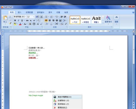 據(jù)介紹,Just Chat的原理十分簡(jiǎn)單,只是把MSN嵌入外觀像Word、execl這些文書編輯等辦公