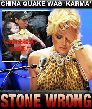 澳洲《太陽(yáng)先驅(qū)報(bào)》PS了一張莎朗·斯通道歉的圖片。