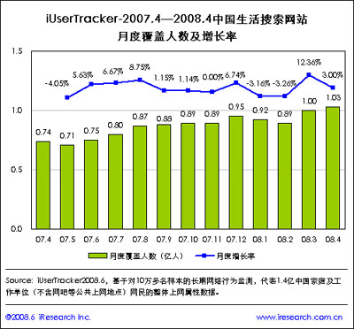 近日,艾瑞咨詢發(fā)布國內(nèi)首部《中國生活搜索行業(yè)市場研究報告》。報告顯示,截至2008年4月,國內(nèi)生活搜索覆蓋人群已經(jīng)超過1.03億,較去年同期增幅39%,超過網(wǎng)絡(luò)游戲用戶數(shù)量5700萬,已經(jīng)成為中國網(wǎng)民上網(wǎng)的主流應(yīng)用。
