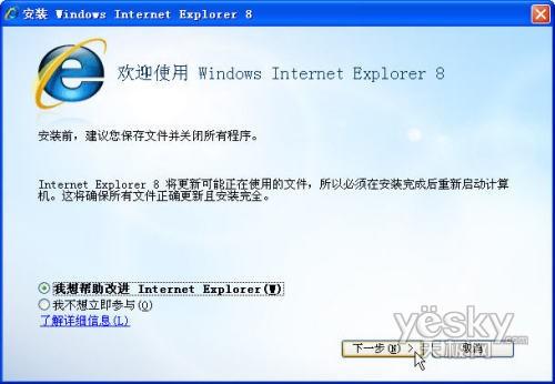 2.進入IE8正式版安裝向?qū)Ы缑妫?/p>