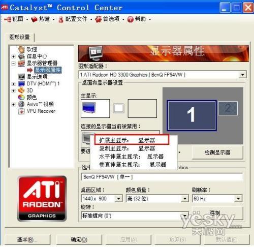 第二步:實(shí)現(xiàn)雙屏輸出,這里需要選擇擴(kuò)展模式;
