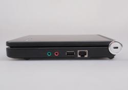 昭陽M10的機(jī)身側(cè)面接口比較簡(jiǎn)單,但也涵蓋了基本的使用需求。機(jī)身前端沒有設(shè)置任何功能接口,不過內(nèi)置了一組雙聲道立體聲音響,在閑暇時(shí)放上一段舒心的音樂也是不錯(cuò)的選擇。機(jī)身右側(cè)設(shè)置了一對(duì)音頻I/O接口、一枚USB2.0接口、一枚RJ45網(wǎng)絡(luò)接口以及轉(zhuǎn)軸上的安全鎖孔,左側(cè)除電源插孔外還加入了VGA視頻接口、SD讀卡器以及USB2.0接口,足以滿足外接存儲(chǔ)設(shè)備或顯示設(shè)備的需要。