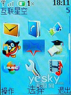 該機在采用S40系統(tǒng),雖然屏幕尺寸有限,但諾基亞2228還是在待機桌面上設計了類似于Widget的邊欄,主菜單采用9宮格設計,二級菜單為列表結構,方便使用各項功能。