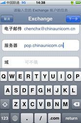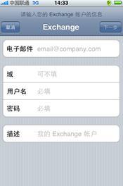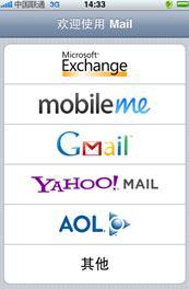 ⑵ 由于聯(lián)通公司郵箱使用的是Exchange,為此選擇“Microsoft Exchange”圖標進入配置界面(Gmail郵箱請選擇“Gmail”,雅虎郵箱請選擇“YAHOO!”,其他常用郵箱一般選擇“其他”)