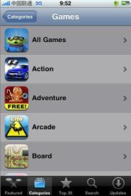:展示App Store中軟件分類的列表。用戶可點擊列表中的某個分類查看該類別的所有軟件