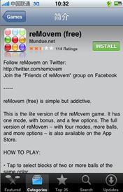 ⑷ 點擊“Top Free”進(jìn)入免費游戲目錄,選中一項免費游戲(如reMovem),進(jìn)入確認(rèn)安裝界面