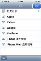 ⑵首次打開Safari瀏覽器時(shí),系統(tǒng)會(huì)彈出書簽菜單,如不想訪問(wèn)蘋果推薦訪問(wèn)的網(wǎng)站,可直接點(diǎn)擊右上角的“完成”按鈕進(jìn)入空白頁(yè)面(如想查看推薦網(wǎng)站,直接單擊相應(yīng)的書簽即可)