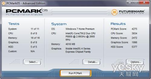 PCMark05 是考察筆記本綜合性能的測(cè)試軟件,在測(cè)試中我們采用了集顯模式,測(cè)試總成績(jī)?nèi)匀辉?000分以上,其中處理器和硬盤部分表現(xiàn)出色,內(nèi)存和顯示部分一定程度拉低了總成績(jī),不過(guò)在獨(dú)顯模式下,分?jǐn)?shù)會(huì)有較大程度提升。