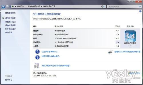 通過(guò)Win7檢測(cè)我們能夠很清晰看出Z55整體性能的表現(xiàn),其中處理性能最高,達(dá)到了6.1分,由于配備了4GB內(nèi)存配合64位操作系統(tǒng),內(nèi)存方面的性能也表現(xiàn)出色,達(dá)到了5.9分。另外硬盤部分也表現(xiàn)優(yōu)秀達(dá)到了5.9分。只是3D顯示部分稍顯不足僅為3.4分。不過(guò)對(duì)于商務(wù)用戶來(lái)說(shuō),3D部分在實(shí)際應(yīng)用中并不太多,況且配備9400M獨(dú)立顯卡能夠流暢運(yùn)行目前大部分主流游戲和商務(wù)3D軟件。