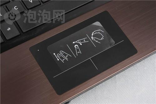 腕托使用了與機(jī)身頂蓋相同的材質(zhì),這樣做有三個(gè)優(yōu)點(diǎn),首先提升了手感和堅(jiān)固性,另外還在一定程度上保證了設(shè)計(jì)的整體感。本機(jī)觸控板設(shè)計(jì)頗有新意,遺憾的是在按壓左右鍵時(shí)整體略微下沉,定位精度中規(guī)中矩。