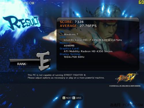 測試方案:在街霸4的測試中,我們同樣選擇了默認畫面設(shè)置和1024×768分辨率。