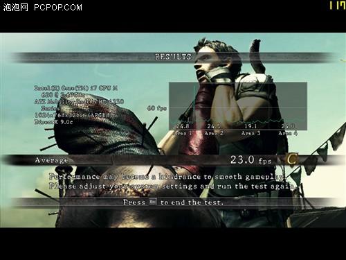 測試的平均幀數(shù)為23幀,在游戲過程中能夠感覺到丟幀的情況,但是基本還可以運行。