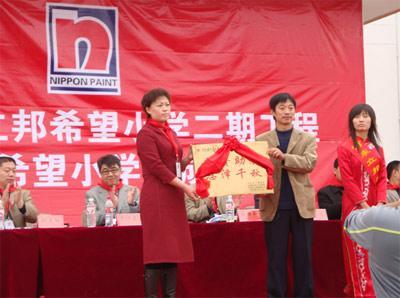 立邦(中國)有限公司再度讓一所希望小學注入彩色的夢想。2008年10月20日,立邦公司在山西捐建的一所希望小學二期彩色希望小學工程竣工。上午九點,在雄壯的國歌聲中,立邦太谷希望小學二期工程暨彩色希望小學落成儀式正式開始。立邦公司領(lǐng)導同太谷縣副縣長、太谷教育局局長及河東鄉(xiāng)書記、希望辦的領(lǐng)導一起,為其揭牌并參加當天舉行的立邦捐贈儀式,并參觀校園文化藝術(shù)節(jié)作品、觀看師生表演。