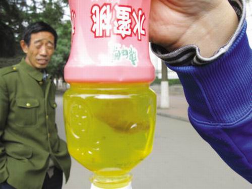 于先生告訴記者,9月10日,他從校內(nèi)一商店花3元,購買了一瓶康師傅水蜜桃飲品。當(dāng)他回到辦公室時卻發(fā)現(xiàn),飲料瓶中漂浮著一些深色的物體,他來回搖了一下飲料瓶,飲料中的漂浮物越來越多,最大的一塊比一元的硬幣還大。他看到后頓時感到非常惡心,還慶幸自己沒有飲用。