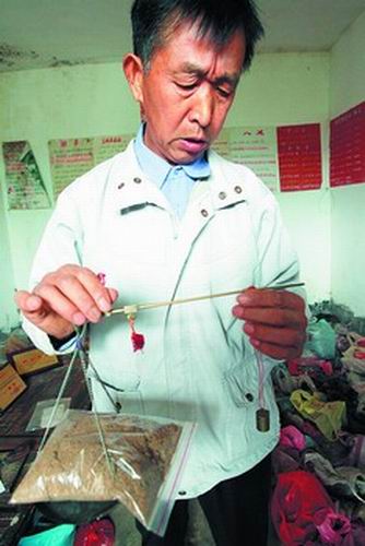 推開二樓的一間屋子,一股霉味撲鼻而來,地上擺放著數(shù)百個裝有各類中草藥材的塑料袋和壇壇罐罐!斑@些藥材中99%是植物類藥品,也有少數(shù)動物類和礦物類藥材,有些是我從邵東等地采購來的,有些是我上山采來的。”熊學(xué)賢拿出幾包已包裝好的粉末狀藥品告訴記者,這些是他研究出來的藥品,分別命名為“惡性腫瘤1號內(nèi)服藥”、“惡性腫瘤2號外敷藥”、“艾滋病攻克劑”等。記者看到,這些藥品的外包裝上無任何部門的批文,僅有一張打印的“說明書”。熊學(xué)賢說,他的這些藥品很有效果,已治好了多位患艾滋病和癌癥的病人。