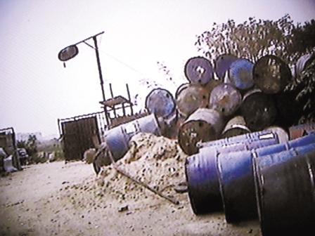 昨天下午,羊城晚報(bào)記者以收購(gòu)“潲水油”為名,進(jìn)入該家煉油窩點(diǎn)。從泰龍工業(yè)園附近的一條小路拐入,穿過(guò)鐵路涵洞不到100米即到,門(mén)口以竹柵欄做門(mén),未見(jiàn)廠名或掛任何招牌,卻用木桿高高掛起一個(gè)油桶。人一走近門(mén)口,一陣難聞的餿臭味便迎面撲來(lái),入門(mén)左側(cè)堆放了幾十個(gè)空油桶,還有一堆堆榨剩的油渣。場(chǎng)內(nèi)中央并排連著十幾個(gè)大水泥池,池內(nèi)裝填有大量剩飯剩菜等食品垃圾,空氣里彌漫著惡臭,令人掩鼻;再往里走,是一架帶有發(fā)動(dòng)機(jī)的簡(jiǎn)陋榨油機(jī),機(jī)器轟鳴聲中,不斷有深黃色的油液被擠出,滴到榨油機(jī)下方的一個(gè)槽里;旁邊還有幾個(gè)貌似用作煮油的圓筒裝置,周圍油污滿地。記者現(xiàn)場(chǎng)看到,場(chǎng)內(nèi)沒(méi)有一間固定建筑,全是用木頭、鎂瓦搭建起來(lái)的粗陋臨時(shí)棚寮。
