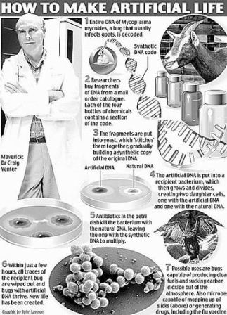 本月20日,美國科學(xué)家宣布,他們在創(chuàng)造人工合成生命的道路上又邁進(jìn)了一步,世界首例“人造生命”,即完全由人造基因控制的單細(xì)胞細(xì)菌誕生。他們將它命名為“人造兒”。該項實驗表明,新的生命體不一定要通過“進(jìn)化”來完成,也可以在實驗室里“被創(chuàng)造”。消息傳出,立即引起社會各界的強(qiáng)烈反響。許多科學(xué)家對這一成果給予了積極評價,但也不乏憂慮之聲。