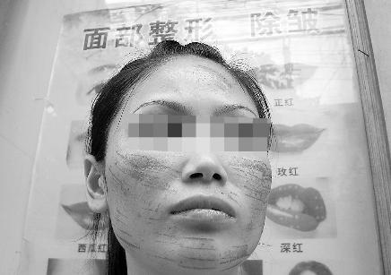 6月10日晚,喜歡美容的李信瓊在金花橋金興南路97號(hào)一家美容店內(nèi),做了一次所謂的“光子祛紅血絲”。但半個(gè)小時(shí)的功夫,她那張?jiān)詾楹赖陌變裘嫒荩共紳M了一條一條令人觸目驚心的“燒痕”。昨日,在屈辱和絕望的雙重打擊下,李信瓊再次來(lái)到店內(nèi)討要說(shuō)法……