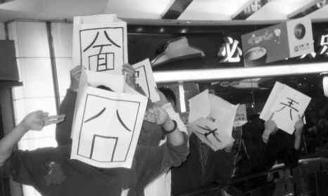 “可以看作是一種解壓方式,一種發(fā)泄吧,這些詞能代表現(xiàn)現(xiàn)代白領(lǐng)的各種心態(tài),例如‘囧’代表郁悶、‘烎’代表不服輸?shù)木竦鹊。”MK說,他會在廣州六個白領(lǐng)出現(xiàn)較多的地方進行這樣的表演,還打算將這些表演做成視頻放到網(wǎng)上去。