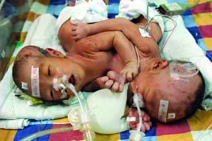 胸腹相連,兩個(gè)小生命緊緊地連在一起。只是他們并不知道,父母和醫(yī)生正為他們的命運(yùn)擔(dān)憂。