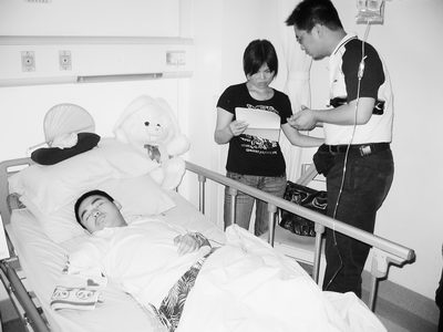 昨(2)日,記者來到位于成都的四川大學(xué)華西醫(yī)院,向“可樂男孩”薛梟轉(zhuǎn)交全國網(wǎng)友鼓勵信件。主治醫(yī)生項舟教授說,薛梟身體恢復(fù)不錯,已可以獨立下床扶著床邊行走。