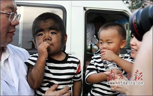 小文才的雙胞胎兄弟身上沒有多毛的癥狀。昨日,深圳一醫(yī)院醫(yī)療專家組專程將“毛孩”文才,和同樣“長(zhǎng)毛”的爺爺、爸爸、姑姑接到深圳,開始免費(fèi)的長(zhǎng)期外形和心理救助治療。記者何俊攝