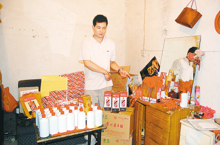 辦案民警告訴記者,從去年初開始,來自河南信陽的袁某就和老鄉(xiāng)余某在一起制假販假,之后又雇姚某送貨。袁的父母拿收廢品當幌子掩飾兒子制假販假,同時還可獲取一些廢舊酒瓶和包裝。他們買來廉價白酒后,加水勾兌成“茅臺”、“五糧液”等假名酒。每瓶假酒的成本不到10元。之后將這些假酒以每瓶50元至100元的價格,賣給西安的一些煙酒店。