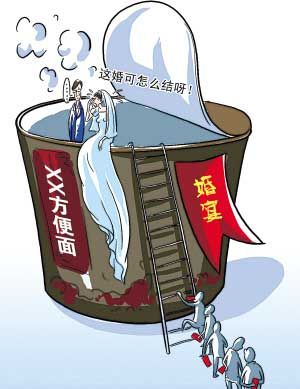 原來,這家酒店因頭一天發(fā)生“疑似食物中毒”事件,婚宴即將開席時,衛(wèi)生部門突然來通知,稱調(diào)查結(jié)果沒出來前,不允許酒店炒菜。但由于之前已簽訂5對新人的婚宴合約,所以只好為前來慶賀的近千賓客,提供大桶方便面充饑。