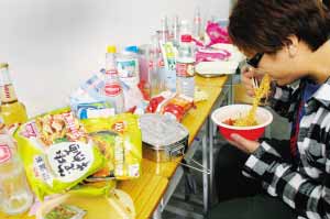 學(xué)生小江寧愿在宿舍吃泡面也不想去飯?zhí)贸燥。信息時(shí)報(bào)記者 葉偉報(bào) 攝