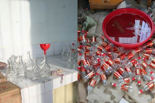 經(jīng)審訊,自2008年7月以來,3名犯罪嫌疑人以1萬余元的價(jià)格(每只空“五糧液”酒瓶4元、商標(biāo)8000余元)從浙江溫州一徐姓男子手中購(gòu)進(jìn)了300套假冒的“五糧液”包裝及商標(biāo),利用低檔“尖莊”白酒(每瓶約10余元)灌制假“五糧液”銷售到薩爾圖、龍鳳等一些煙酒店、超市,非法牟利10萬余元(已揮霍)。