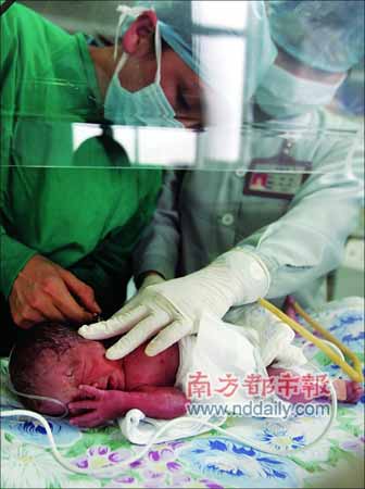 16:30,四個(gè)新生命被送至新生兒監(jiān)護(hù)室!艾F(xiàn)在情況還算穩(wěn)定,但老四有點(diǎn)窒息,這些小家伙要過兩三天之后才能穩(wěn)定下來!毙律鷥嚎浦魅伪R慶暉說。