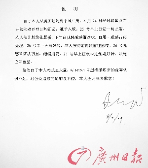 出院在即且不想被媒體打擾的“公眾人物”李某,留下一封信交付給醫(yī)院。昨日,記者從廣州市第八人民醫(yī)院獲取其寫給公眾的“說明”。由于超過三天無癥狀且兩次檢測均為陰性,他已符合衛(wèi)生部出院標(biāo)準(zhǔn),其在醫(yī)生同意下,打算悄悄離院。