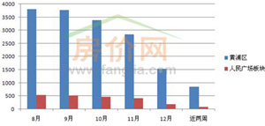 從板塊掛牌量來看,黃浦區(qū)近兩周掛牌的新房源僅為850套,人民廣場板塊為95套。此外,黃浦區(qū)總掛牌量為3857套,人民廣場板塊總掛牌量為545套。