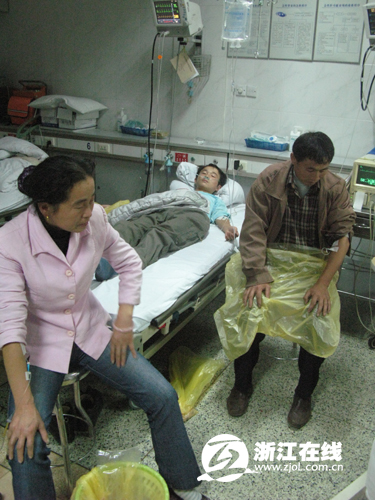 吳國(guó)華是幾個(gè)人中的老大哥,他的情況稍微好點(diǎn),只是感覺(jué)到惡心,四肢無(wú)力。他說(shuō),他們都是江西撫州東鄉(xiāng)縣人,前幾天一行8人跟著老家的余某出來(lái),準(zhǔn)備到杭州豐潭萍水路口的橡樹(shù)園工地做工程安裝,今天早上7點(diǎn)多剛下火車。