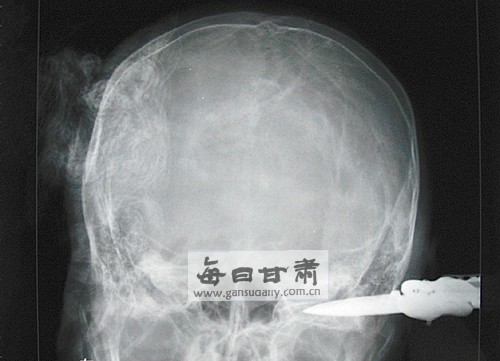 11月18日晚7時,經(jīng)過兩小時的手術(shù),蘭州軍區(qū)蘭州總醫(yī)院安寧分院醫(yī)生將插在一名學生頭部的刀刃成功取出。當日中午位于安寧區(qū)的蘭州明達理工職業(yè)學院兩名同學因口角發(fā)生沖突,其中一名同學手持水果刀捅向?qū)Ψ,在刺中對方胳膊后,又?厘米長的刀刃刺進同學的后腦勺……目前,傷者還在進一步治療中。