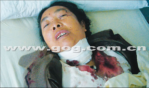 昨日下午,記者在貴醫(yī)附院看到了這名躺在病床上的老人。老人大約50多歲年紀(jì),女性,衣著較為整潔。接診護(hù)士告訴記者,老人剛被送到醫(yī)院的時(shí)候可以說(shuō)話,但是問(wèn)及家里的情況時(shí),老人卻拒不回答。同時(shí),護(hù)士還表示從老人的只言片語(yǔ)中聽(tīng)到,老人說(shuō)咽喉部位插的水果刀是她自己捅的。