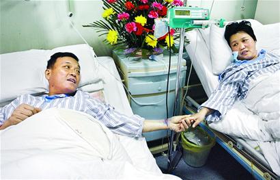術(shù)后,夫婦倆住在同一病房,他們的病床只隔不到半米,夫妻二人經(jīng)常相互鼓勵,互相溫暖,這讓醫(yī)護人員也深受感動。“是我老婆給了我第二次生命,以后我要好好過日子,好好疼她!睏罴紫部粗眿D,滿含熱淚。
