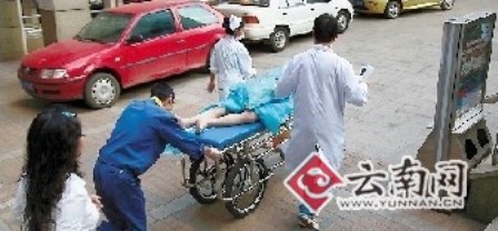 6點(diǎn)50分,在省紅會(huì)醫(yī)院急診外科,醫(yī)生告訴記者,傷者正在醫(yī)技樓2樓照片。隨后,記者來(lái)到醫(yī)技樓2樓看到,傷情較重的伙子被推出照片室,然后送到急診外科。