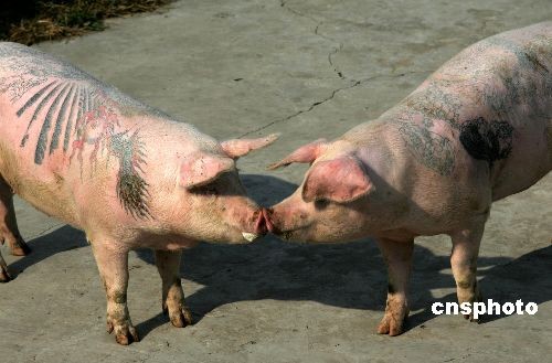 圖:藝術(shù)家給豬紋身 豬皮可賣百萬(3)