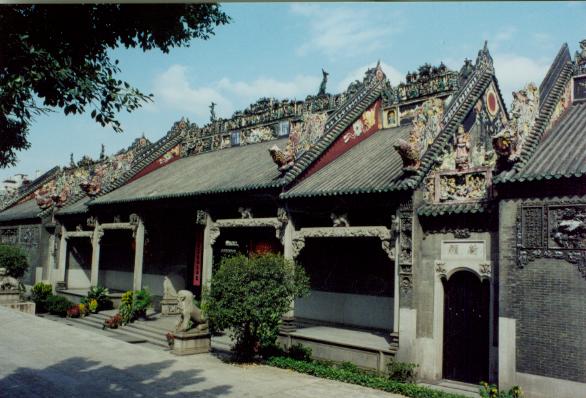 陳家祠堂建于光緒十六年----二十年間(1890-1894),由黎巨林設(shè)計,是從前姓陳的廣州人用以供奉祖先的廟寺。其整個建筑巧奪天工,主要以其“三雕、三塑、一鑄鐵”而著稱,號稱“百粵冠祠”。