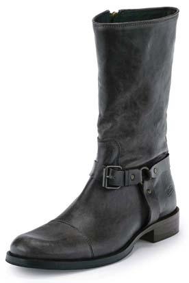 Tips:在靴子搭配上有時候全黑并不是非常亮眼的打扮,只能說是最保險的方式。其實如果換條懷舊色的牛仔褲可以更突出你的靴子.另外如果你的褲腳比較小可以塞進鞋子,拉出一點在靴口制造出比較蓬松隨意的感覺。如果你的褲腳比較大那么就卷在外面比叫舒適,卷起的邊可以稍微寬一點這樣會給褲子和靴子之間留白.隨意而強調(diào)靴子。