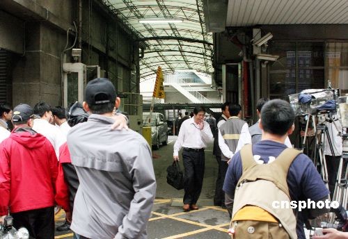 圖為陳水扁進(jìn)入特偵組后,大批警方在現(xiàn)場戒備,而陳水扁的車隊(duì)則由側(cè)門進(jìn)入特偵組。