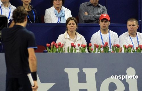 費(fèi)德勒的女友米爾卡(前排右三)到上海網(wǎng)球大師杯現(xiàn)場(chǎng)為這位瑞典“天王”加油助陣。
