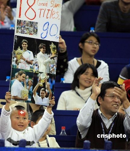 圖為上海“小費(fèi)迷”為費(fèi)德勒吶喊助威。中新社發(fā) 湯彥俊 攝