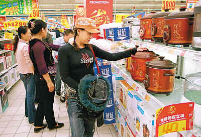 “超薄高清電視、帶烘干的洗衣機、能制冰的電冰箱……只要你能想到的,都可以在商場里買到,現(xiàn)在的家用電器真的是應有盡有。”正在忙于為新居采購家用電器、居住在北京的劉樂女士說。