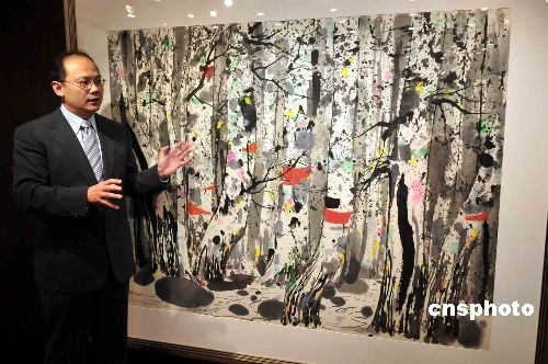 圖為預(yù)料成交價超過四百萬港元吳冠中名作《白樺林》。中新社發(fā) 譚達(dá)明 攝