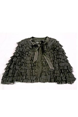 層疊的薄紗荷葉邊會(huì)在微風(fēng)吹起的瞬間泛起無(wú)數(shù)漣漪,這讓神秘的黑色斗篷充滿爛漫的味道。不要被堆疊的體積感所影響,這件D&G實(shí)屬輕薄的動(dòng)感單品。